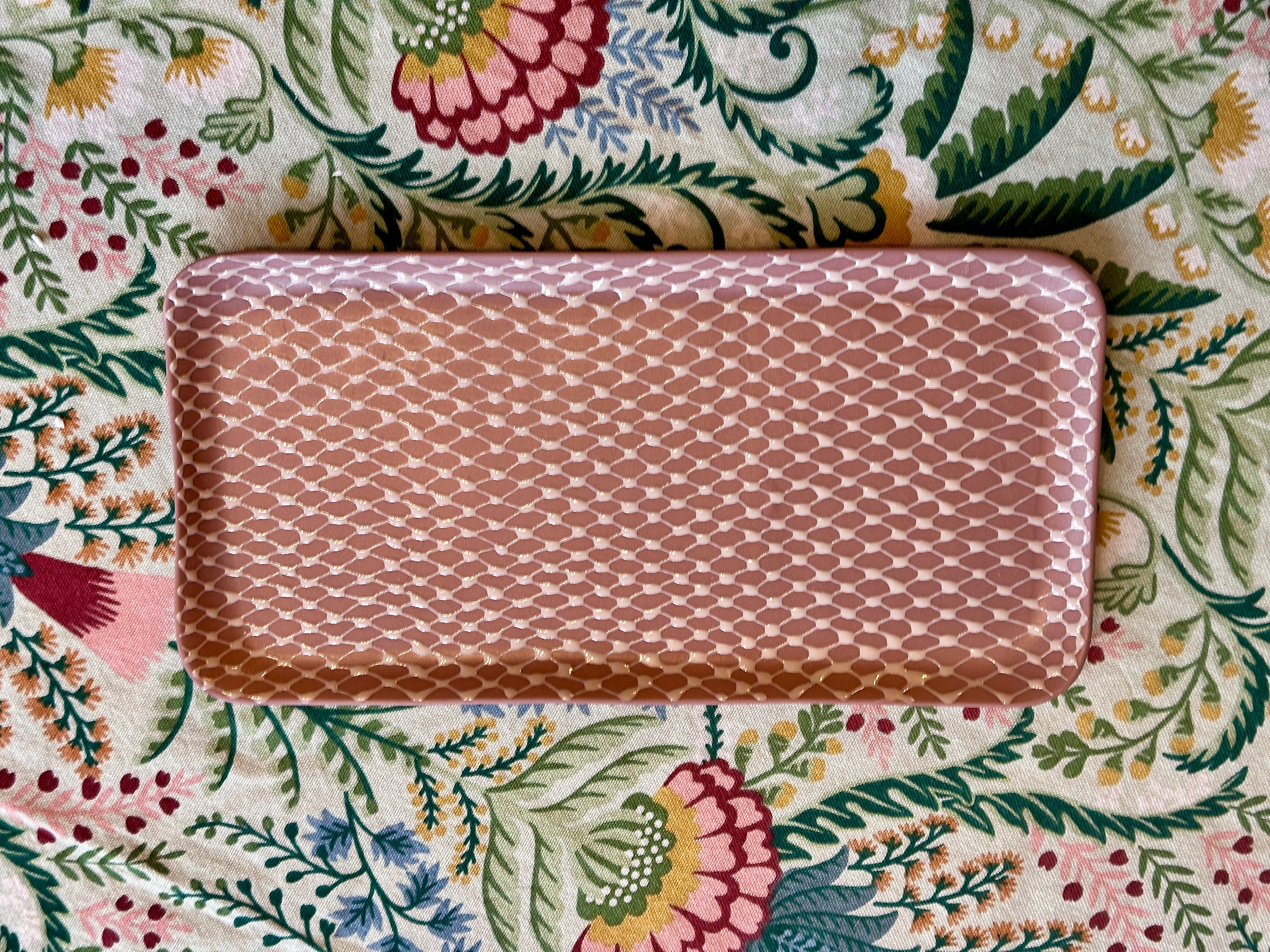 They fit perfectly on the rectangular serving plate in Indian red with cream zigzag.