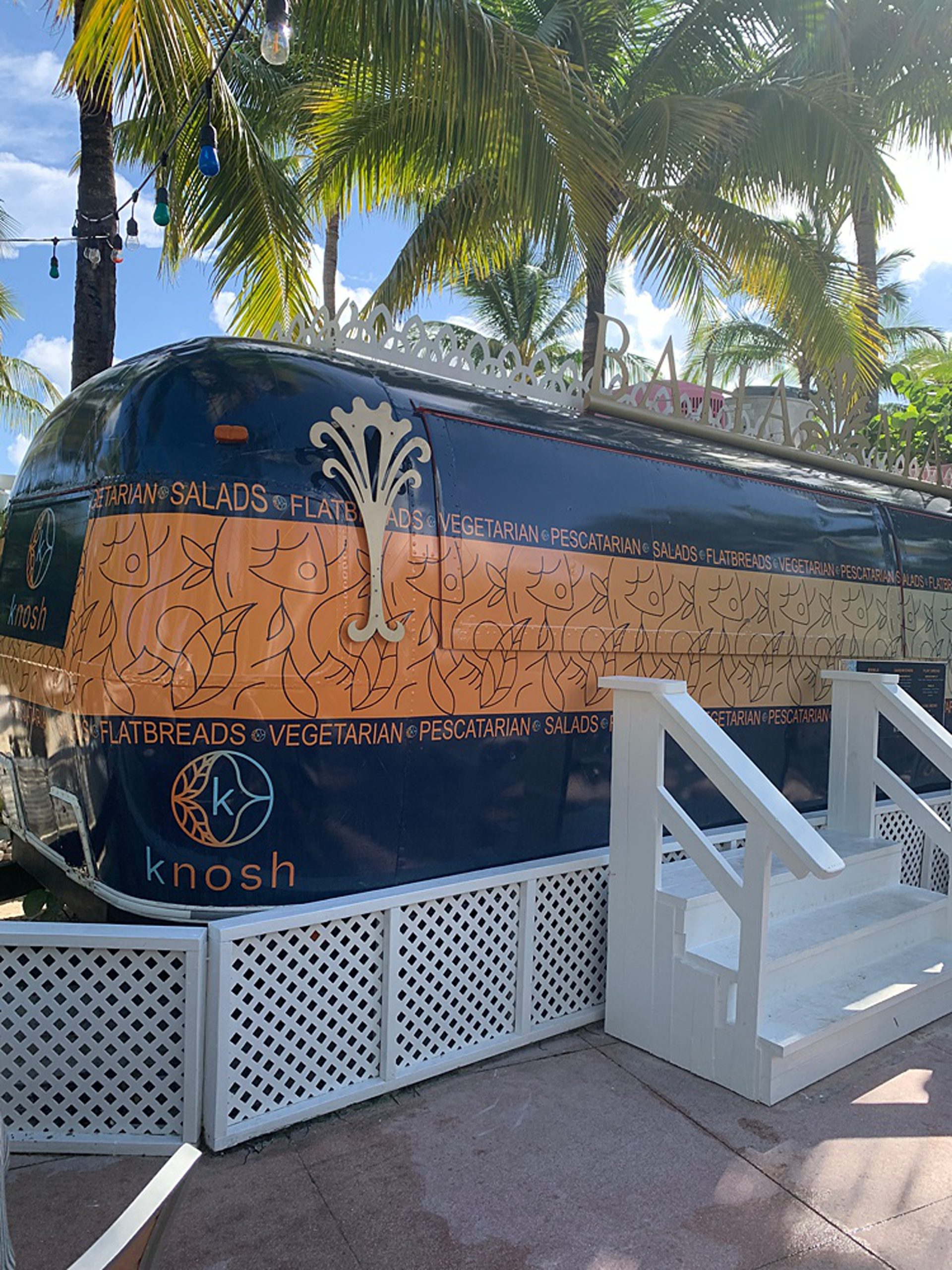 Located just steps from the crystal blue beach is Knosh, a kosher dairy food truck with breakfast and lunch options for everyone. From flatbread pizzas, to the classic lox and cream cheese on a bagel. There are also pre-packaged options at the hotel’s French themed cafe Madeline if you’re looking for something to take with you to lounge by the pool.