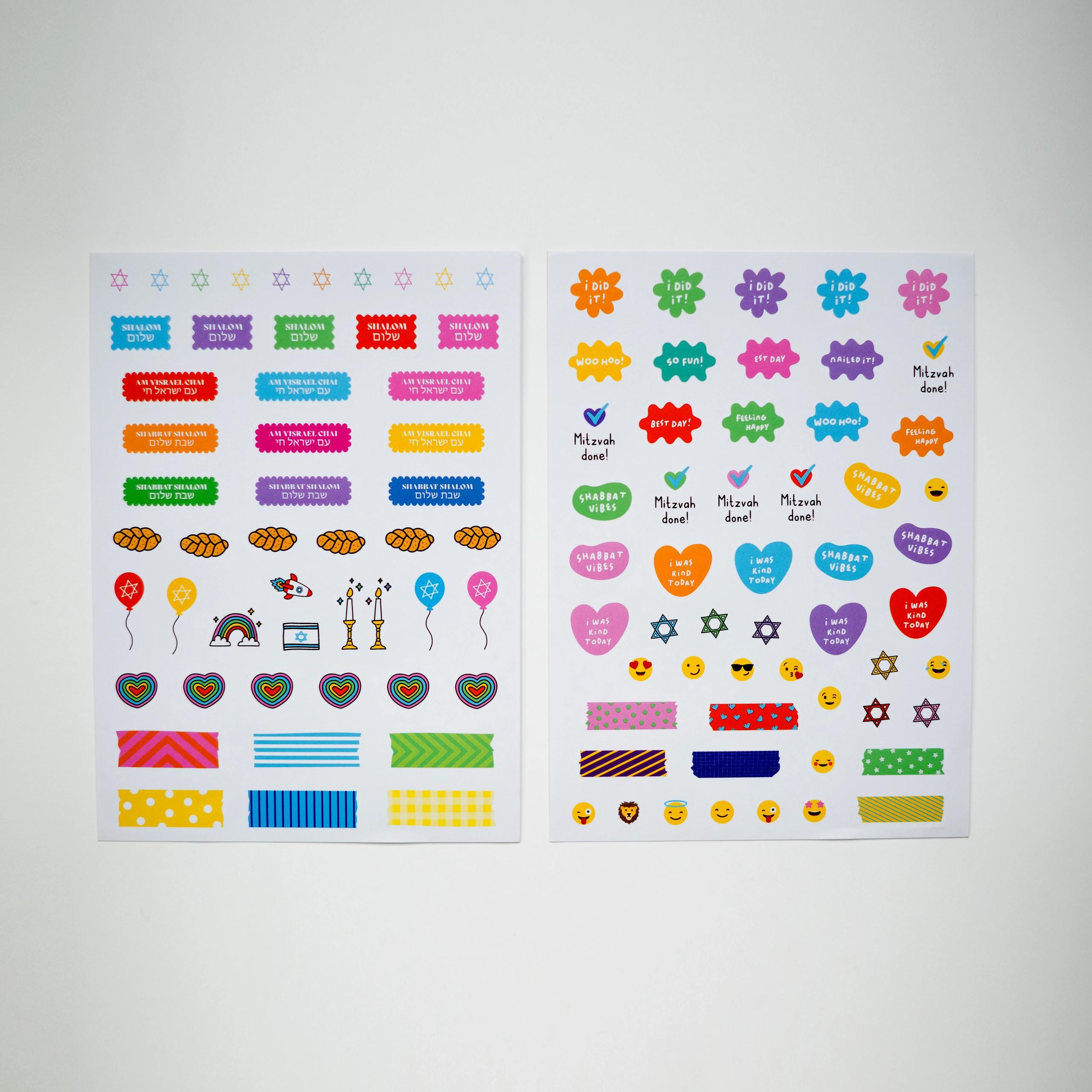 Kids can personalise their journal with challahs, Stars of David, smiley faces,, Jewish symbols, and more.